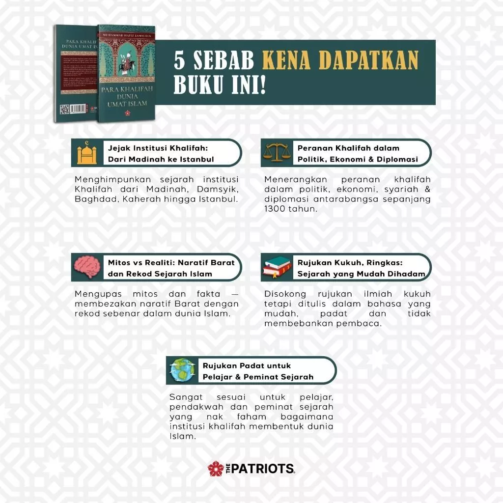 Namun, ini bukan sekadar helaian sejarah. Buku ini membuka rahsia khilafah, memperkenalkan siapa para khalifah dan menyingkap bagaimana institusi ini pernah menjadi denyut nadi kegemilangan umat Islam. Ini kerana pada hakikatnya, memahami sejarah khalifah bererti menyelami jati diri dan warisan kepimpinan umat ini.